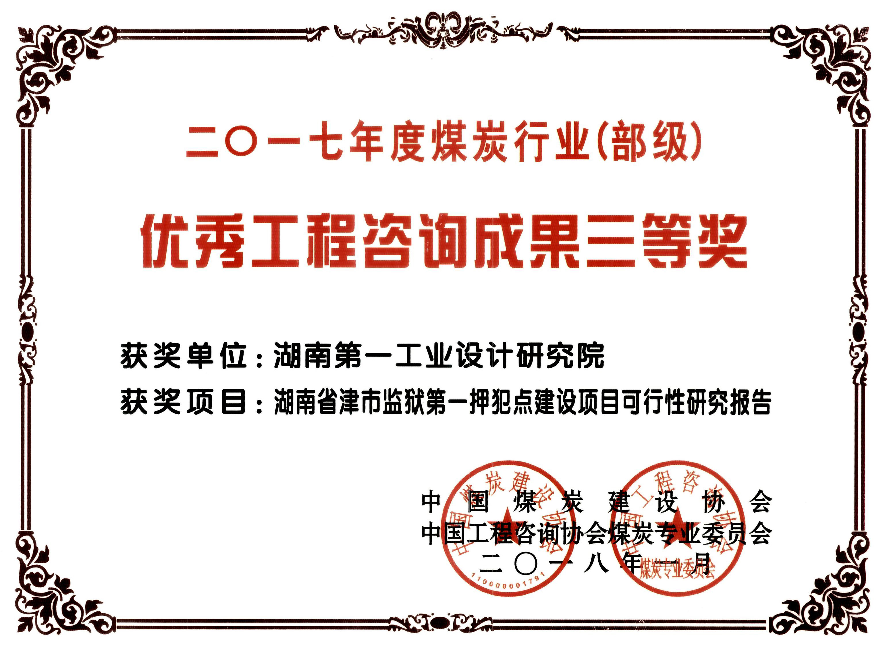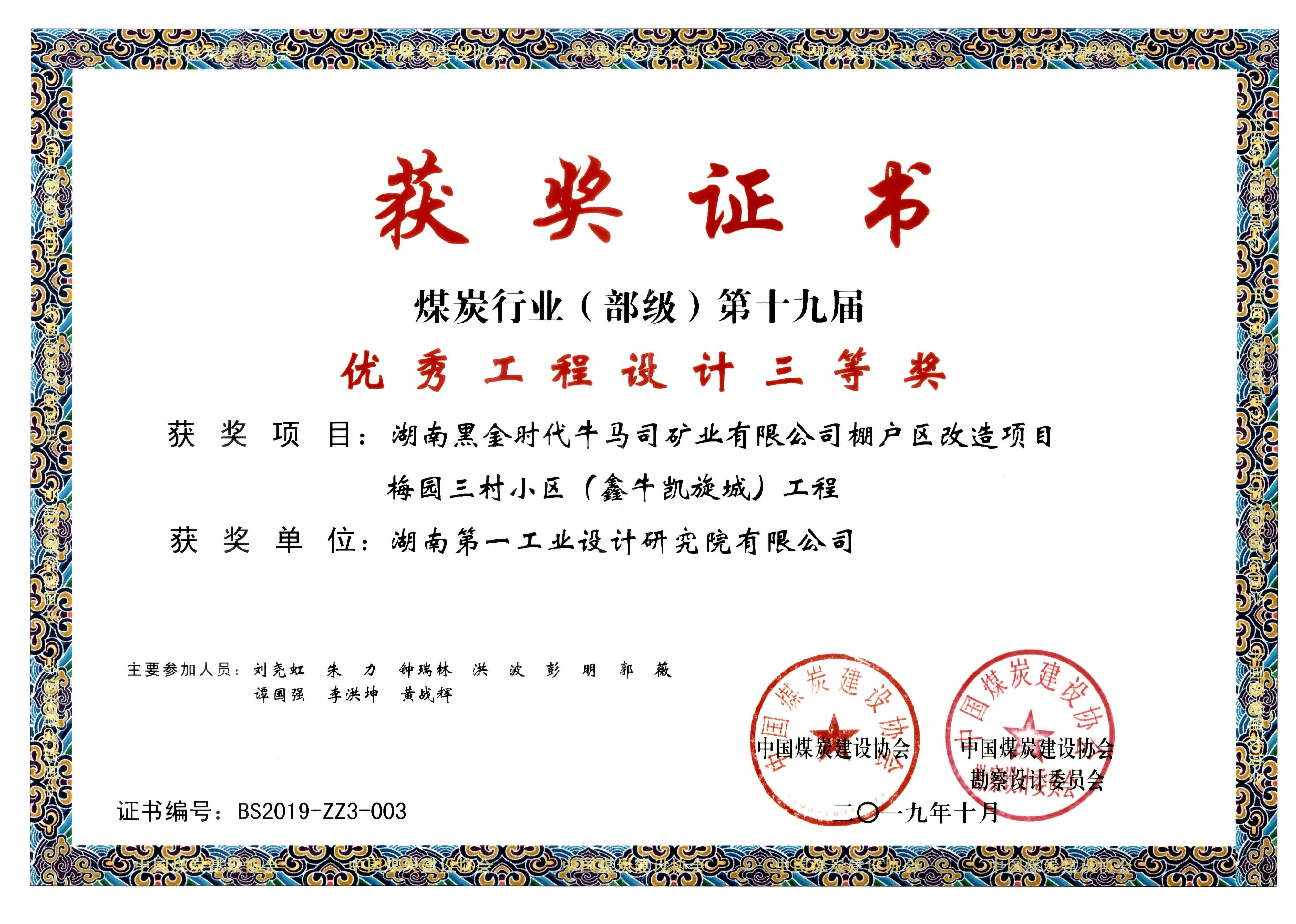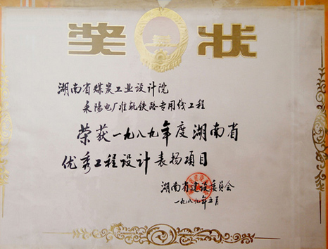 湖南省優(yōu)秀設(shè)計表揚金獎(1984)