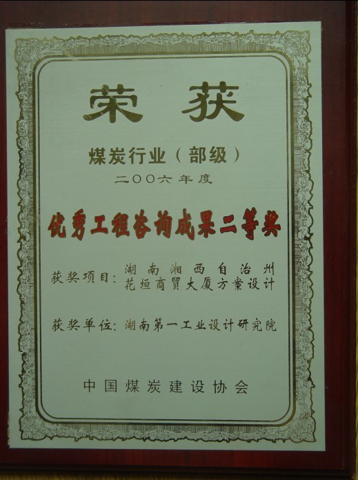 湖南省優(yōu)秀設(shè)計項目二等獎(1984)